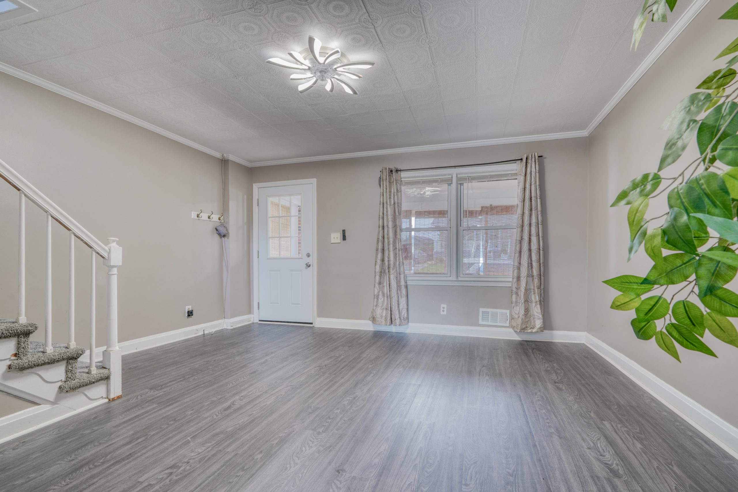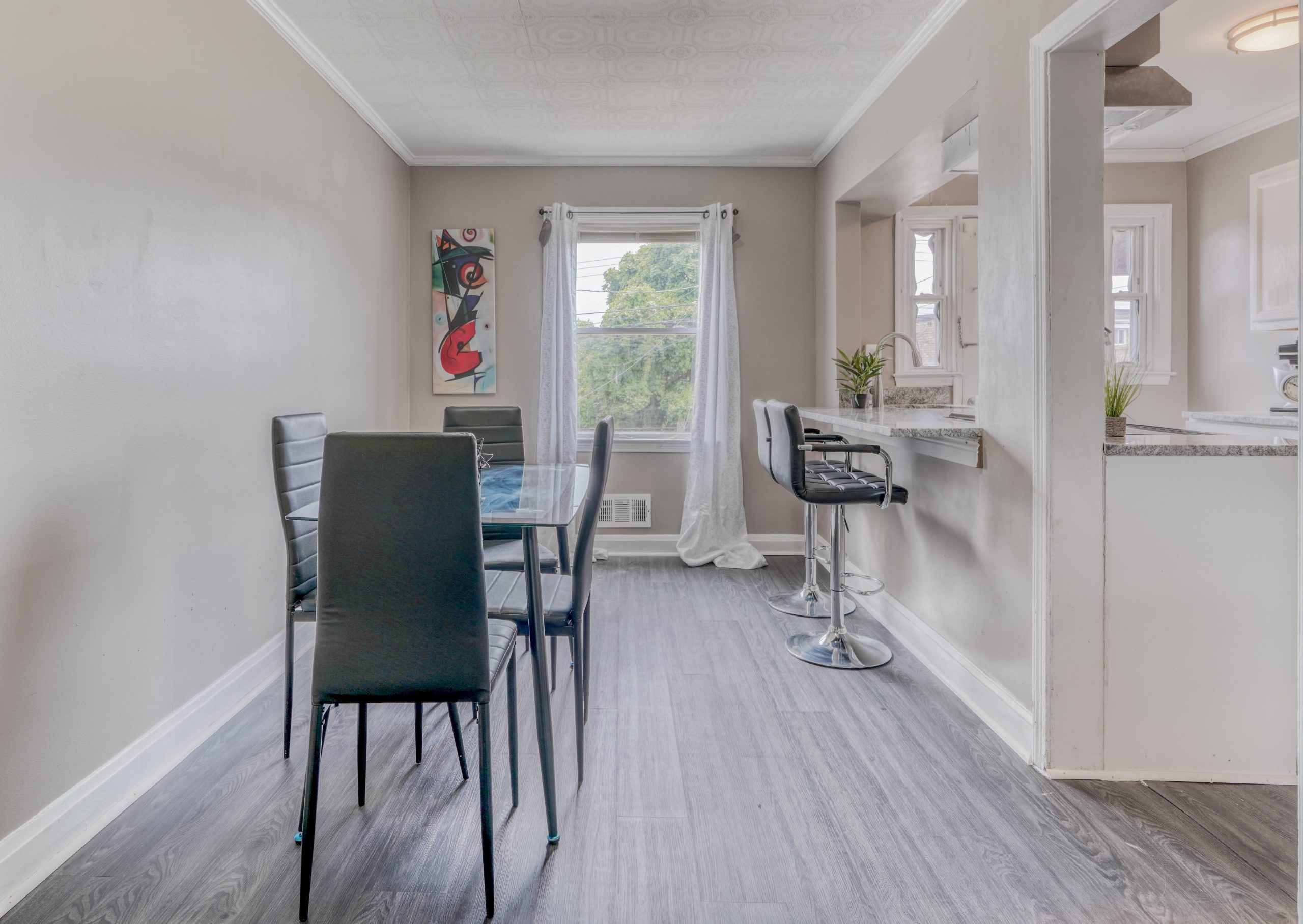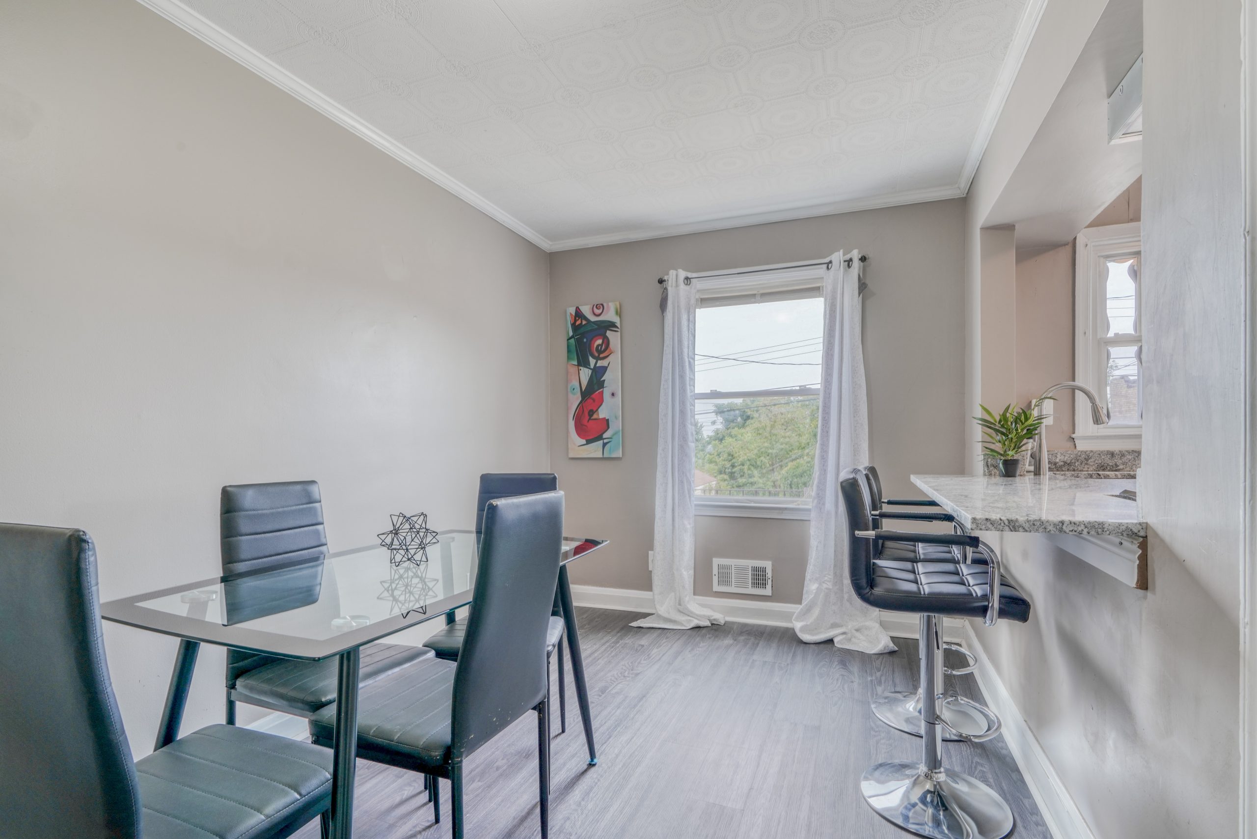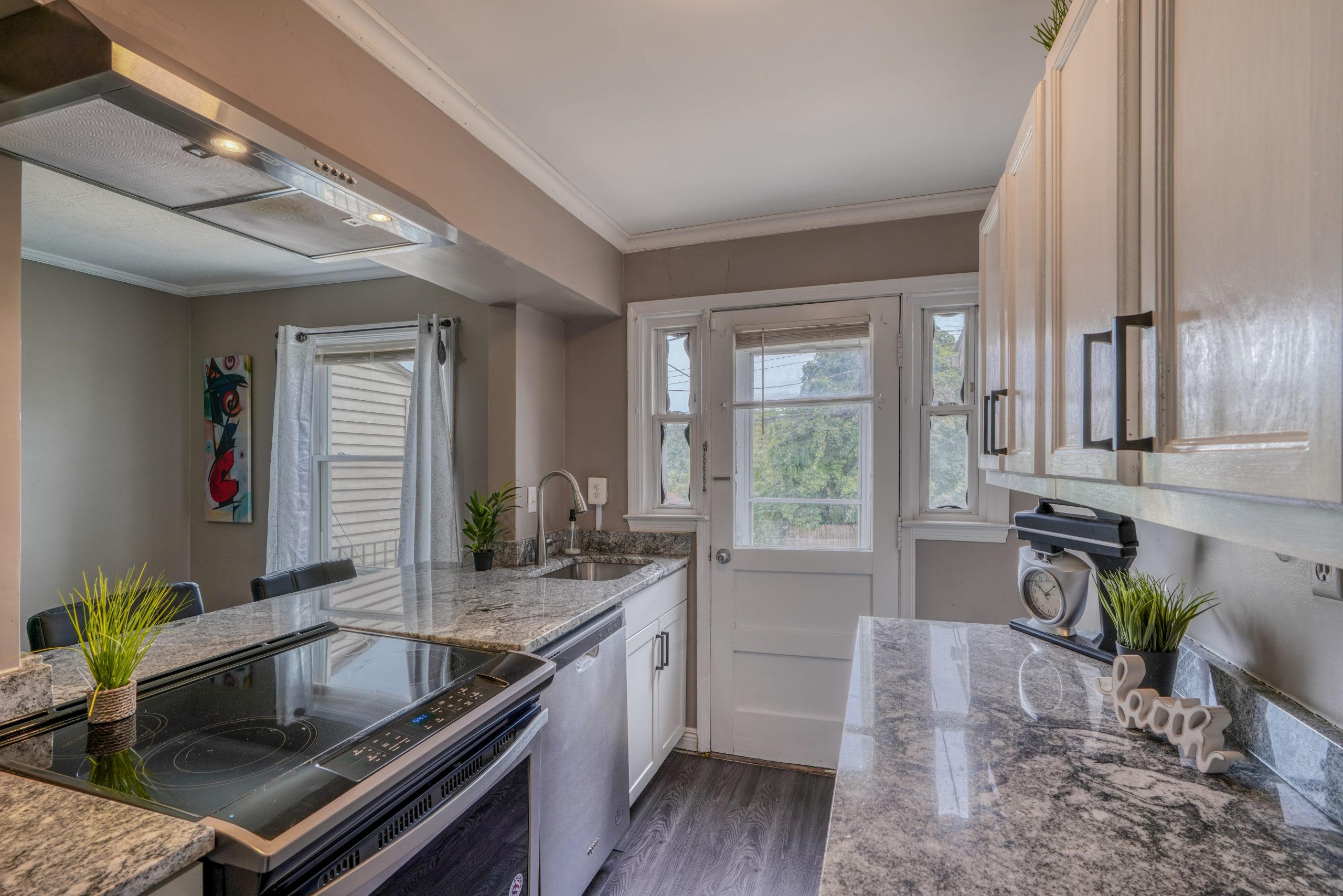 $1575 3 bedroom 1 bath plus finished room in lower level. The home is renovated with an open concept kitchen with breakfast bar, granite, stainless steel under-mounted sink & appliances, garbage disposal new luxury vinyl floors & carpet. Central air, laundry in lower level, shed, enclosed front porch, back balcony, privacy fenced yard & 2 car parking pad. Located at the top of the hill across the street from park, football stadium, and beautiful view of downtown! Walking distance to schools, bus stops and stores. Within 5 minute drive to downtown, 695, 895 95 & more!